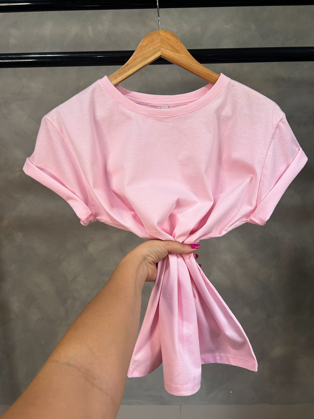 • Modelo: T-shirt com cobre gola ombro a ombro (soltinha no corpo)
