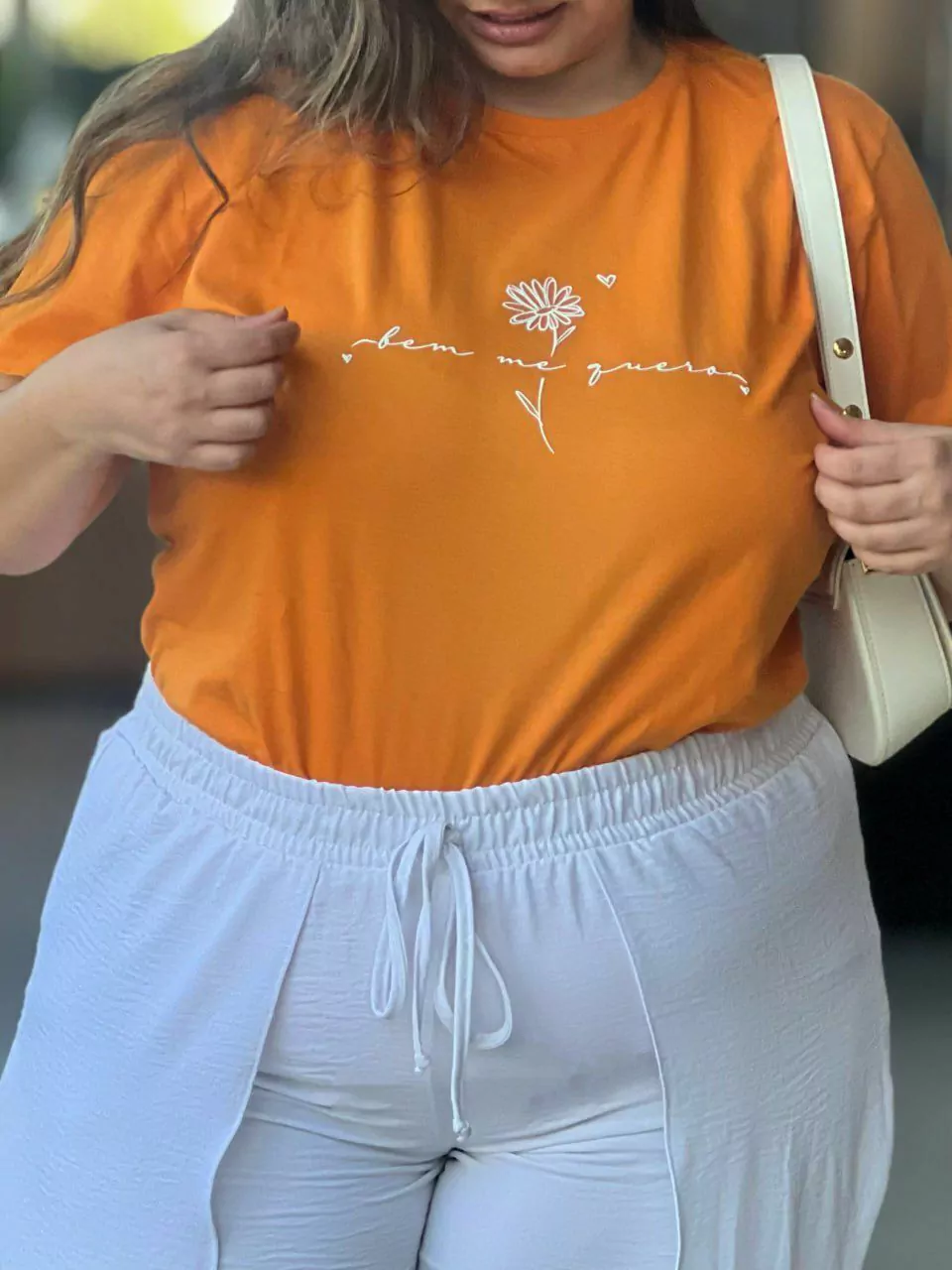 • Modelo: T-shirt com cobre gola ombro a ombro (soltinha no corpo)